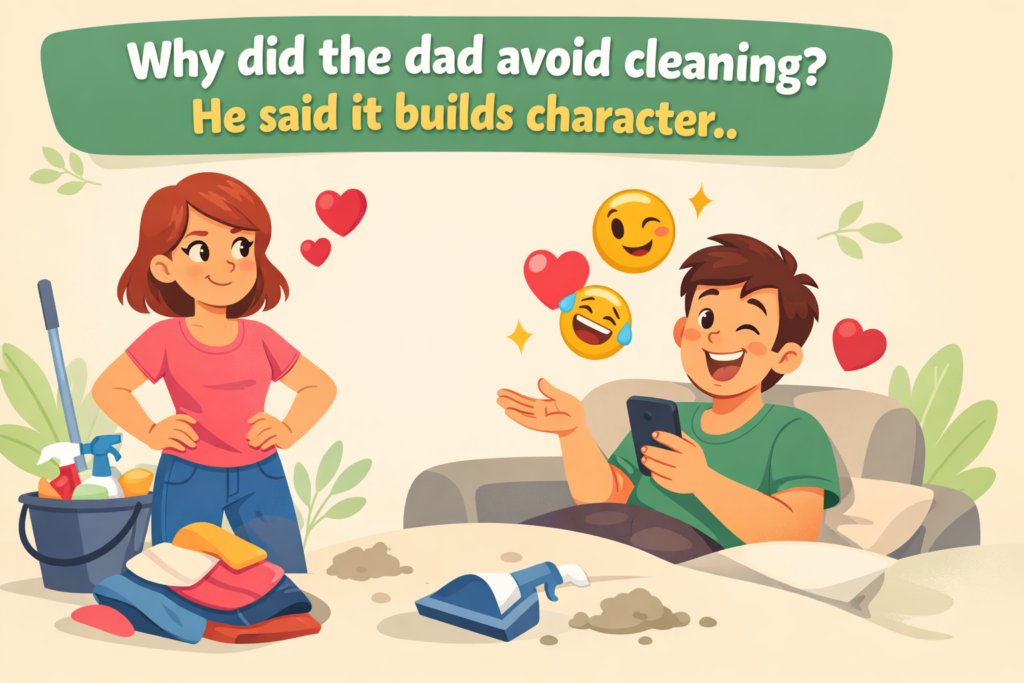 - Why did the dad avoid cleaning? He said it builds character.
